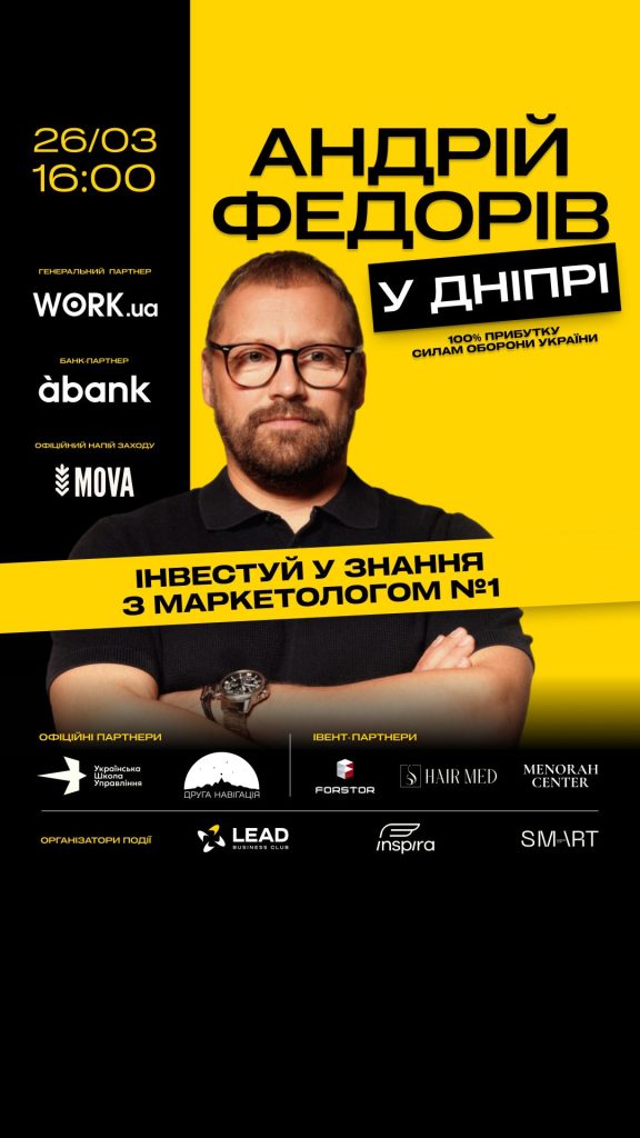 Крайній кейс PERSHE з просування івентів – виступ Андрія Федоріва у Дніпрі.